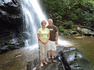 Our entire family is staying in a cabin in Townsend, Tennessee this week.  We arrived a few minutes apart from three directions on Sunday evening.  Yesterday, was spent tubing the Little River (no pictures).  Today, we hiked to the water falls at Tremont.  The hike is becoming a tradition with Cheryl and myself; the trail and water falls are not on published maps so that few people know about them.
