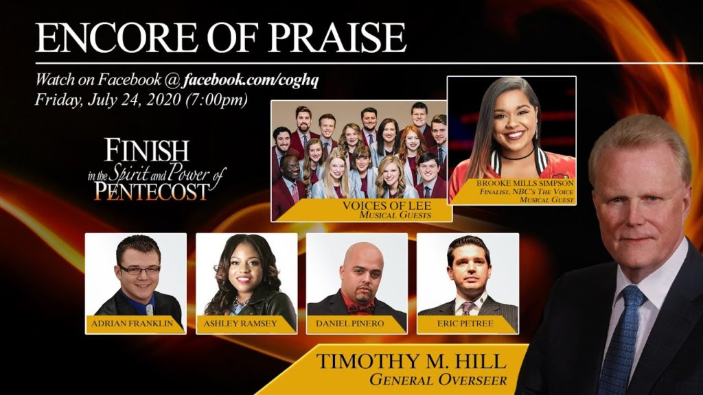 “Encores of Praise” concludes tonight with a focus on the Jeremiah Generation with special music from a mass youth choir, the Voices of Lee, and Brooke Mills Simpson. The 2018 General Assembly was closed by a powerful message from General Overseer Dr. Tim Hill that included Adrian Franklin, Ashley Ramsey, Daniel Pinero, and Eric Petree.