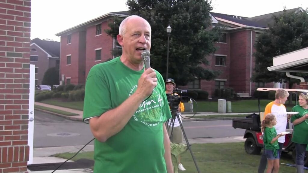 Lee University Athletic Director Larry Carpenter accepts the pie challenge given by Women’s Soccer head coach Matt Yelton in order to raise funds and awareness for pediatric cancer through the austin Hatcher Foundation (http://www.hatcherfoundation.org/)